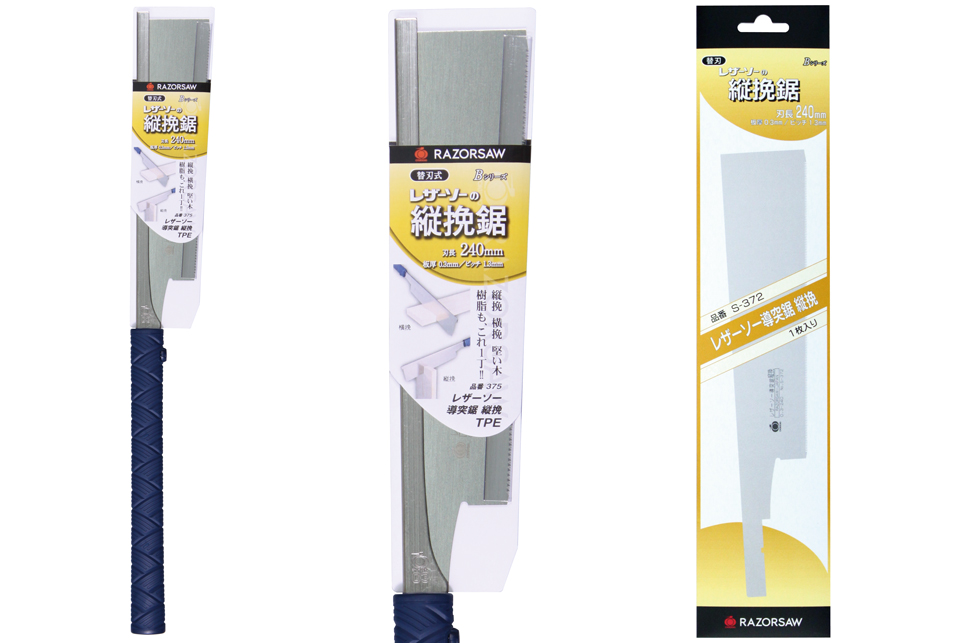 TPE resin is used for the entire grip. A grip that does not slip no matter where you hold it. A design that uses SEIGAIHAMON and never gets tired. Rip teeth are good for both rip cutting and cross cutting, and for making tenons. Rip teeth can do tough work, so they are also useful when cutting hard wood such as decking materials and plastic. Dozuki with a blade that's 0.3mm thick.