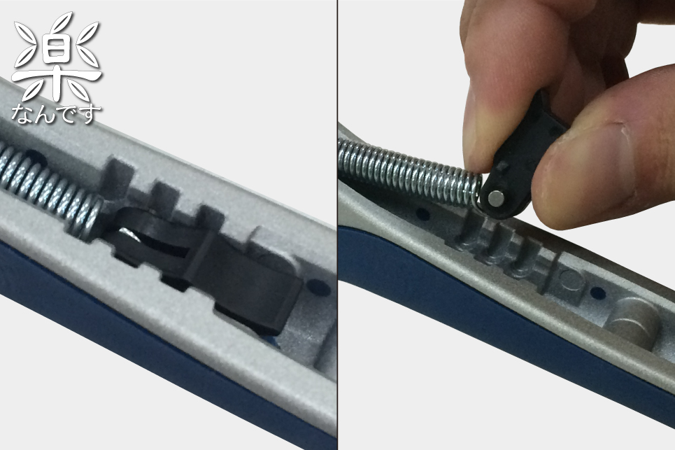 Tension spring is used on Rakunandesu pruning shears. Spring is placed inside the grip, so you do not have to worry about touching it or losing it while you work with it.