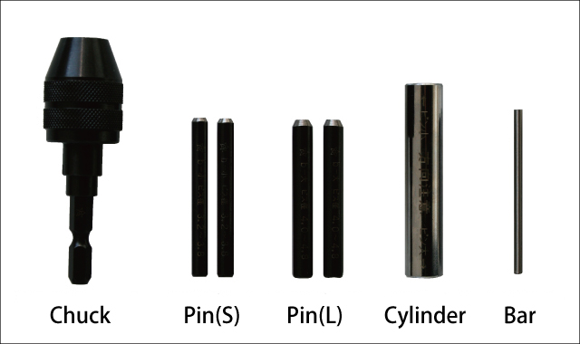 | S5040set | 역회전 척, 전용 핀 소/대, 압출 지그, 압출봉 Chuck, Cylinder, Bar,: each 1pc Pin(S)(L):each 2pcs | 6.35 |