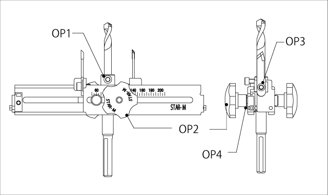 | 드릴링 가능한 재료의 두께, 직경 (Capacity) | 한쪽: 25mm, 양쪽:50mm Hole sizes: 60mm-200mm {Applicable depth} Single face: 25mm Both face: 50mm |