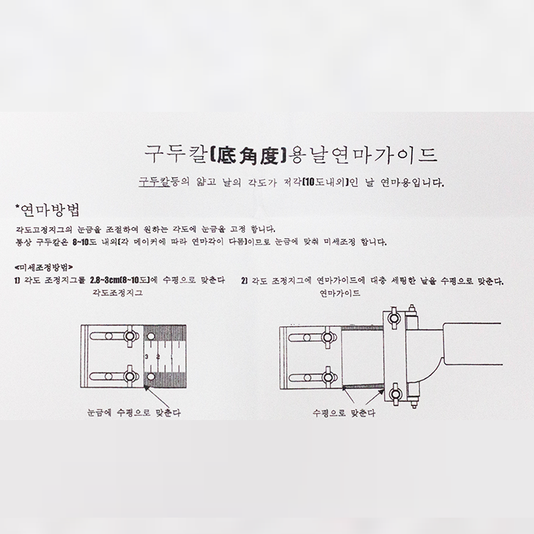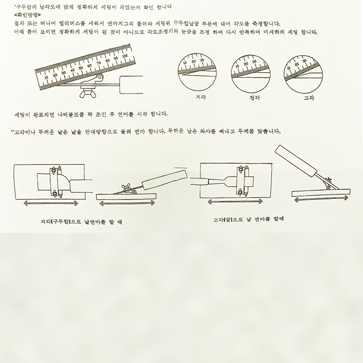 -구두칼 등의 얇고 날의 각도가 10도 내외인 날을 연마하는 용도로 사용합니다